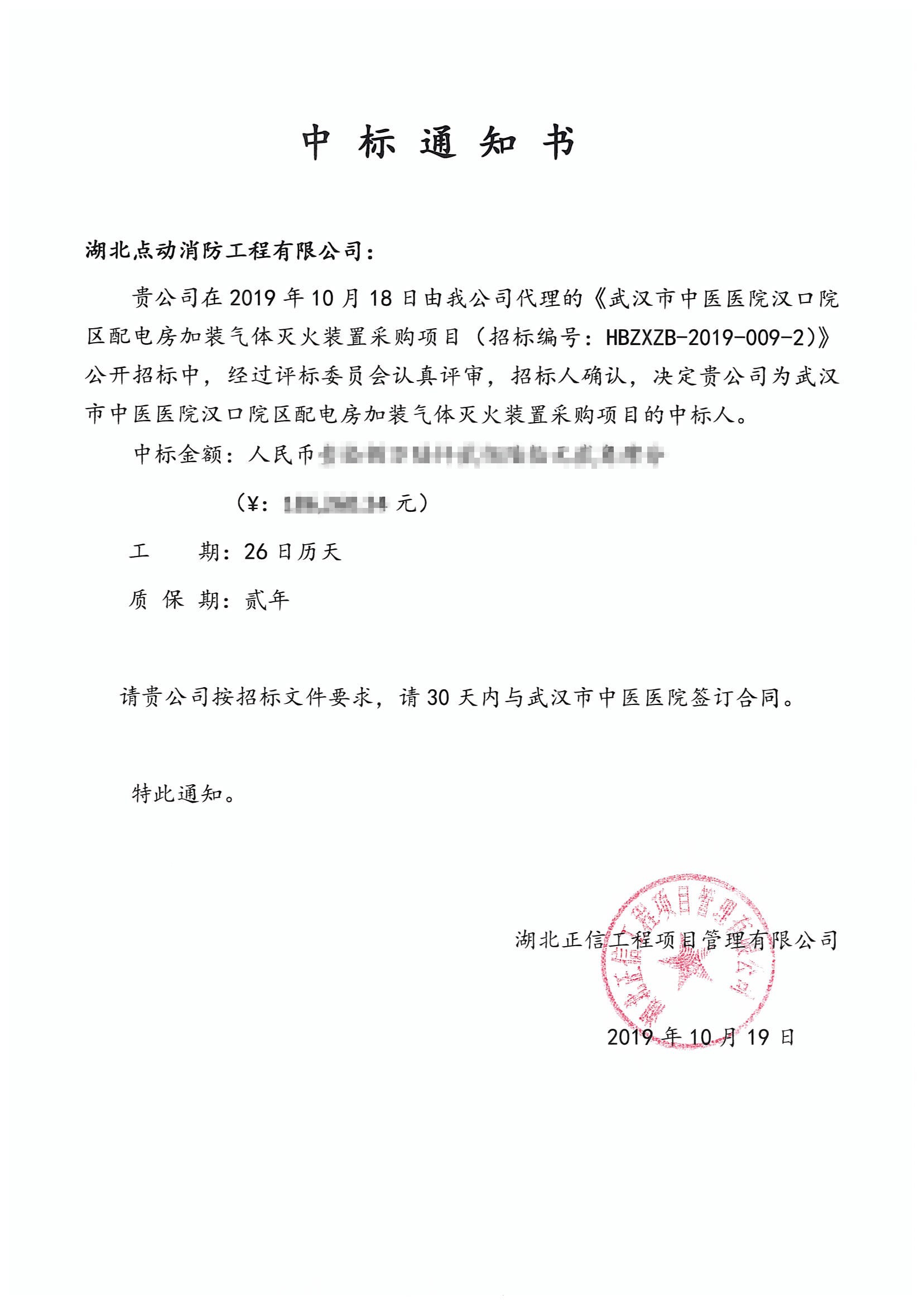 此次為武漢市中醫醫院漢口院區配電房加裝氣體滅火裝置采購項目